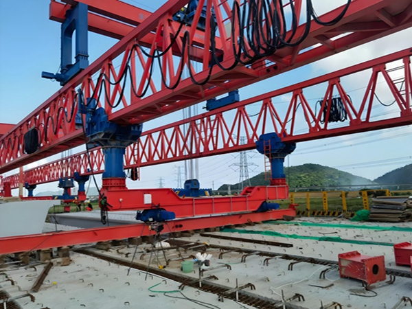 在台风等强风环境下,自平衡架桥机采用多重锚固措施确保安全。除常规支腿锚固外,还增设拉缆防风固定装置,通过钢丝绳将天车或主梁与桥墩或地面锚点连接,形成冗余防护。例如,在风速达65m/s的台风来临前,设备可回复至前、后中支腿支撑状态,主框架前后悬臂长度基本相同,并通过横向联系桁架增强整体刚度,防止因风力导致的结构变形或倾覆。